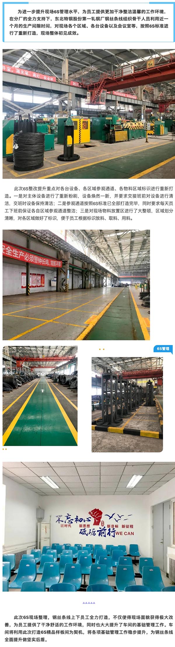沙鋼集團東北特鋼公司第一軋鋼廠鋼絲條線6S管理提升工作初見成效