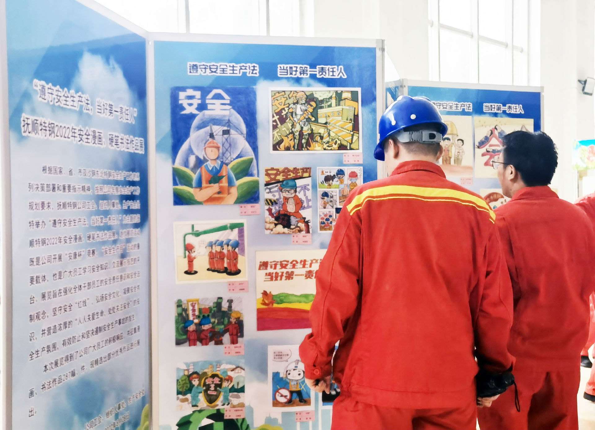 今年6月份,是國家第21個“安全生產(chǎn)月”。根據(jù)國家、省、市及沙鋼集團安全生產(chǎn)工作的系列決策部署和重要指示精神,為唱響“安全發(fā)展”主旋律,推進公司“安全生產(chǎn)月”各項活動落實,6月28日,撫順特鋼公司工會、組織人事處、生產(chǎn)安全處聯(lián)合開展“遵守安全生產(chǎn)法,當(dāng)好第一責(zé)任人”為主題的安全漫畫、硬筆書法作品展。
