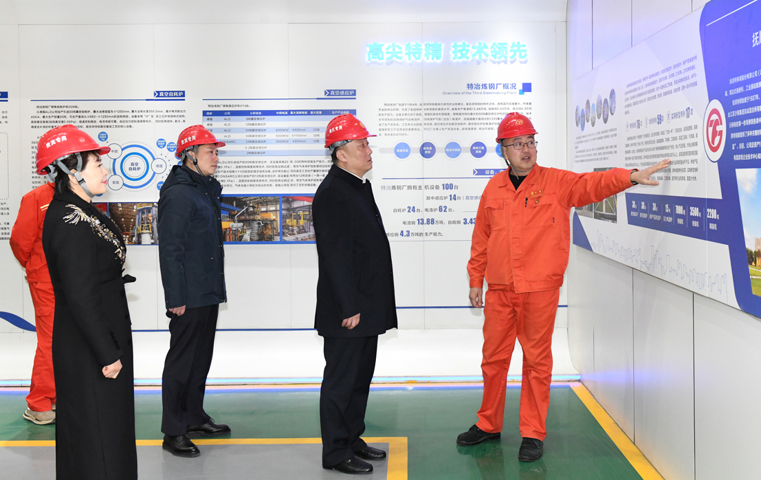 在公司產(chǎn)業(yè)化一期生產(chǎn)現(xiàn)場(chǎng),胡哲一行觀看了特冶生產(chǎn)裝備,詳細(xì)詢問(wèn)了設(shè)備產(chǎn)能、產(chǎn)品質(zhì)量及技改工程建設(shè)等情況。祁勇向胡哲一行詳細(xì)介紹了撫順特鋼近年來(lái)的生產(chǎn)經(jīng)營(yíng)、技改項(xiàng)目建設(shè)和發(fā)展新質(zhì)生產(chǎn)力等方面情況。當(dāng)?shù)弥獡犴樚劁搱?jiān)持“特鋼更特”發(fā)展理念,在現(xiàn)階段鋼鐵行業(yè)市場(chǎng)低迷的情況下,企業(yè)生產(chǎn)經(jīng)營(yíng)保持了良好勢(shì)頭,新建的特冶技改項(xiàng)目已經(jīng)陸續(xù)投產(chǎn),特冶產(chǎn)能不斷增加時(shí),胡哲一行對(duì)撫順特鋼的快速、高質(zhì)量發(fā)展給予了高度評(píng)價(jià)。他表示,撫順特鋼的高質(zhì)量發(fā)展振奮人心,希望撫順特鋼繼續(xù)保持良好的發(fā)展勢(shì)頭,圍繞發(fā)展新質(zhì)生產(chǎn)力持續(xù)發(fā)力,為撫順地方經(jīng)濟(jì)發(fā)展再做新貢獻(xiàn),撫順市委、市政府將持續(xù)優(yōu)化營(yíng)商環(huán)境,全力支持撫順特鋼的高質(zhì)量發(fā)展。