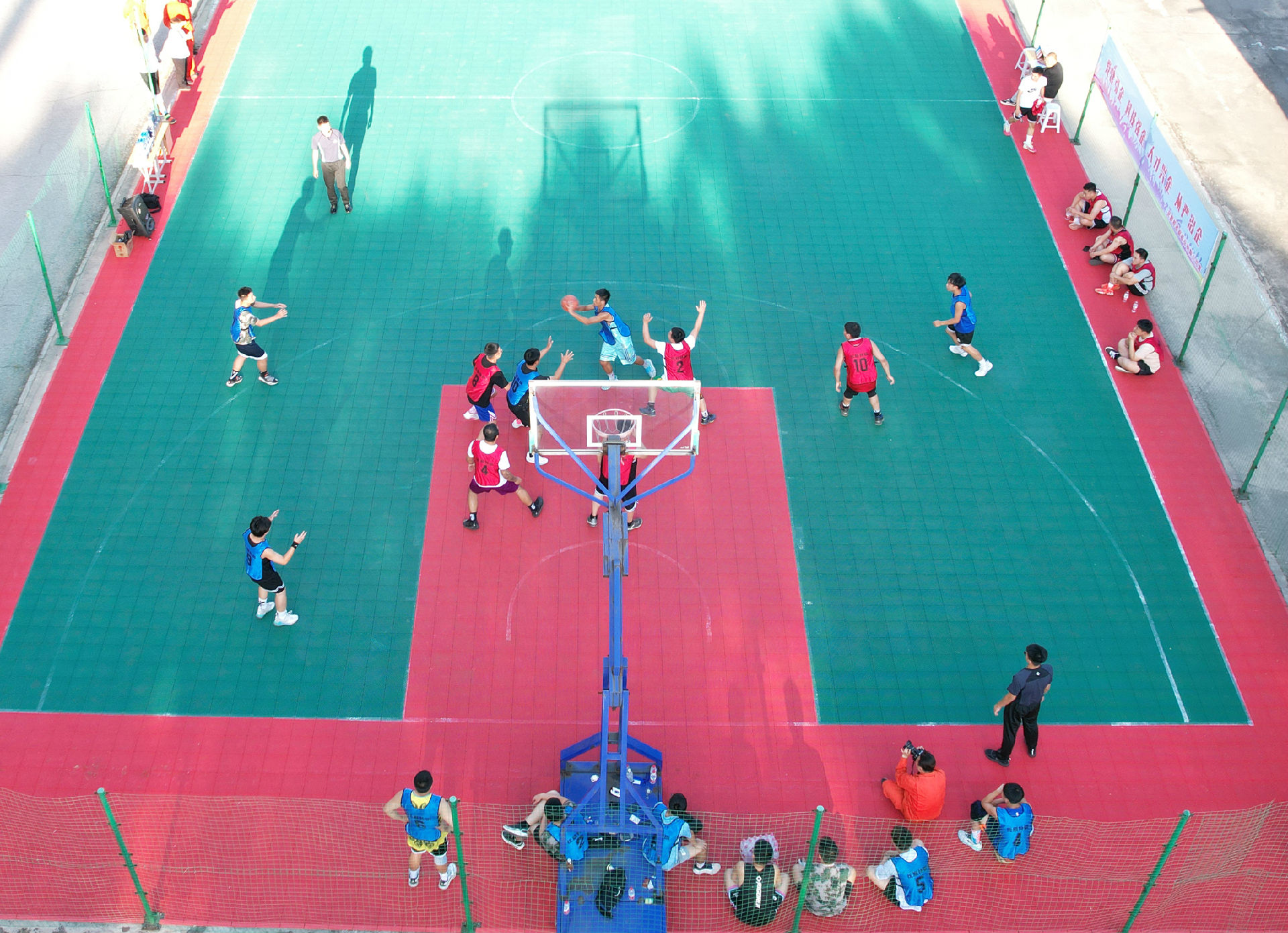 9月7日下午,在撫順特鋼大學(xué)生宿舍籃球場(chǎng)內(nèi),“黨建引企、科技強(qiáng)企、人才興企、從嚴(yán)治企”橫幅標(biāo)語(yǔ)映襯著紅、綠相間的比賽場(chǎng)地顯得格外醒目。以2023年新入職、2022年前入職大學(xué)生員工為基礎(chǔ),組建的兩支籃球代表隊(duì)精彩亮相。