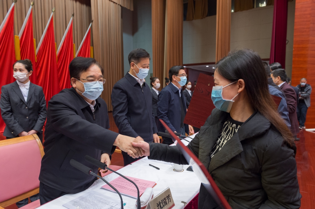 沈國芳向優(yōu)秀企業(yè)、先進(jìn)單位和個(gè)人表示祝賀,向奮戰(zhàn)在疫情防控一線、經(jīng)濟(jì)社會(huì)發(fā)展一線的全體黨員干部表示衷心感謝、致以崇高敬意。他指出,奮進(jìn)的道路上需要榜樣,趕超的征途中離不開先鋒。樹立“好榜樣”,就是為了向先進(jìn)學(xué)習(xí)、向標(biāo)桿看齊,延續(xù)“萬眾一心加油干”的旺盛勢頭;進(jìn)行“大動(dòng)員”,就是為了號(hào)召全市上下奮力拼搏、銳意進(jìn)取,以“快馬加鞭未下鞍”的昂揚(yáng)姿態(tài),共同點(diǎn)燃“開放再出發(fā)”的火熱激情,全面掀起“項(xiàng)目提速年”的澎湃熱潮。